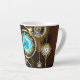 Turquoise lenses with antique watch with brass gears and golden keys on rusty, brown background. Steampunk style.