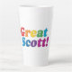 Ce t-shirt est décoré de l'emblématique phrase "Great Scott !" dans une police amusante, multicolore et légèrement rétro. Les lettres sont audacieuses et pop avec un arc-en-ciel vibrant de couleurs, donnant au design une sensation ludique et attrayante. Le texte est le point central du design, célébrant la célèbre citation de film avec un style simple mais dynamique