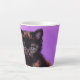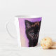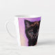 Latte Mug avec un chat de style Van Gogh avec arrière - plan violet. Ce chaton noir regarde adorablement le spectateur ! Un grand cadeau pour les amoureux de les chats et les collectionneurs d'art hollandais !