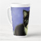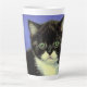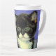 Latte Mug avec un chaton tuxedo dans le style de Vincent van Gogh! Cette jolie petite pose avec des fleurs violettes. Un superbe cadeau pour les collectionneurs d'art amoureux des chats et néerlandais !