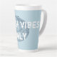 décoration du chalet de plage avec texte personnalisable "vibes de plage seulement" en police blanche en détresse, arrière - plan bleu et illustration de coquillage bleu vintage