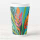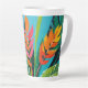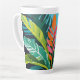 Ce design saisit la beauté luxuriante du feuillage tropical de manière audacieuse et stylisée. La composition se compose d'un agencement frappant de divers feuilles plantes, dont de larges feuilles monastiques, des frondes de palmier élancées et une hélioonia frappante. La palette de couleurs est riche et attrayante, avec des tons verts allant de la chaux à l'émeraude, accentués par des oranges vives, des jaunes et des roses.