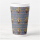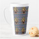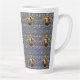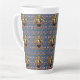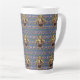 The Bard - Le design original de cette Mug Latte est un motif fait d'un portrait de l'auteur William Shakespeare. Le portrait est dans un cadre orné d'or ovale avec des rubans et une couronne sur le dessus. Le papier peint bleu arrière - plan est orné de châteaux, de couronnes de rois et de fleurs jaunes et rouges, rappelant l'amour, la tragédie et la comédie de ses pièces de théâtre et de sa poésie.