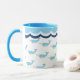 Profitez de votre tasse de café du matin avec cette adorable tasse licorne de mer. Ils ont des narvals illustrés sur un fond blanc avec des vagues en haut. Visitez notre magasin www.zazzle.com/ybnormalone pour plus de beaux cadeaux. Merci Karen Hall #zazzlemade