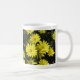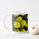 Marguerites jaunes avec centres orange sur fond de feuillage sombre, ornent chaque côté de la tasse. Personnalisez avec le nom de l'utilisateur.