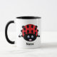 Commencez le jour avec cette tasse de café mignonne personnalisée de coccinelle. Cette tasse de café comporte ma coccinelle rouge et noire de bande dessinée avec ses jolis yeux bleus. Cette conception mignonne de coccinelle peut être endroit sur d'autres styles de tasse comprenant des tasses de voyage. Vous pouvez également customiser cette tasse de coccinelle avec une couleur d'arrière - plan ou texte de vos propres. Grande idée de cadeau pour des amants de nature et de coccinelle. Magasin de la conception du penny de © de coccinelle