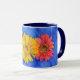 Mon œuvre d'art numérique originale représentant ma photographie originale de trois fleurs de Gerbera, en jaune et rouge, est sur cette jolie tasse à fleurs. L'image a été traitée avec un effet de fantaisie aquarelle pour un aspect illustré et fantaisiste. L'intérieur de la tasse et de l'anse sont d'un ton bleu pour compléter l'œuvre d'art. Ce sont des tasses de 11 onces, juste la bonne taille pour votre café ou thé fait maison - ou même du chocolat chaud ! Cela ferait un excellent cadeau et vous pouvez mettre des sachets de café, des sachets de thé ou du chocolat chaud à l'intérieur. Une autre idée de cadeau est de mettre une petite plante dedans pour la rendre encore plus spéciale pour votre proche. Cela ferait également un beau cadeau pour la fête des mères.