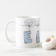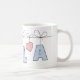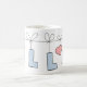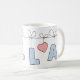 Mug mignon avec nom personnel Ella avec des lettres à pois bleus suspendues à une ficelle ainsi qu'un cœur rose.