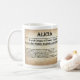 Tasse nommée de signification - Alicia. La personne spéciale dans votre vie mérite une tasse qui capture leur essence ! Ces tasses en céramique comportent les significations et les traits de personnalité liés à une série de noms.