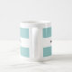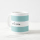 Cette tasse peut être personnalisée avec un nom sur des côtés pour des gauchistes ou des righties et comporte un motif graphique moderne de rayure dans l'aqua et le blanc.