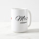 Célébrez votre histoire d'amour avec cette "Tasse personnalisée pour couple MRS" – le cadeau idéal pour les jeunes mariés ou comme surprise d'anniversaire spéciale ! Avec son design élégant et personnel, cette tasse capture magnifiquement l'essence de l'amour et de l'engagement. Avec un titre "MRS" personnalisable, cette tasse peut être personnalisée avec un nom ou une date spéciale, ce qui en fait un souvenir inoubliable pour les couples.