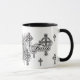 Tasse religieuse de foi et de croix. Des flourishes élégants dans des gris et des noirs subtils sont portés dans toute cette tasse orientée chrétienne, une croix majestueuse au milieu et les mots "foi" des côtés. Croix fleuries tout autour de la tasse.