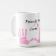Tasse rose d'impression de main de ruban "amis pour un traitement"