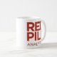 Une tasse avec le logo rouge des textes d'analytique de pilule sans l'arrière - plan.