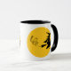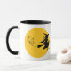 Cette tasse Halloween représente une sorcière sur son balai volant dans le ciel éclairé par la lune.