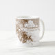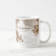 Un mug à café avec une gravure tropicale de palmiers vintage sur une plage de sable et de beaux nuages sur des vagues calmes de l'océan. Cliquez sur Personnaliser pour ajouter votre nom ou message.