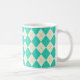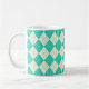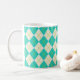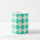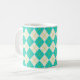 Un motif argyle turquoise vibrant décore cette tasse à café. Le design est issu d'une œuvre d'art originale.