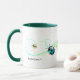Une tasse mignonne avec les coccinelles multicolores contre une bannière tourbillonnante.