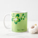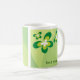 Cette jolie tasse est parfaite pour n'importe quel amant de papillon. Elle a un arrière - plan vert avec un bon nombre de papillons verts partout il. Chaque côté a un espace fait sur commande pour un nom ou un message.