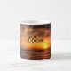 Obtenez en mode de relaxation et buvez de votre café ou thé avec cette tasse magnifique personnalisable de scène de plage de coucher du soleil. Caractéristiques de conception ce un ciel orange vif de coucher du soleil au-dessus d'une plage tranquille avec une tache à entrer en votre nom ou texte du côté. Entrez juste en votre texte dans la boîte pour la personnaliser. Si vous voulez changer la police, frappez juste le bouton de personnaliser pour choisir vos propres. Grand pour un rappel de grandes vacances, ou des amants de plage/océan ! Cette tasse est disponible dans différentes tailles et les styles, sélectionnent votre favori.