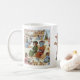 Cette tasse pour des amants des chats et de l'art vintage de chat comporte trois dessins extraordinaires des chats par l'artiste anglais Louis Wain de chat. On est d'un chat rayé au loin observé derrière un vase bleu regardant fixement curieusement une petite souris considérant un cube en sucre. L'illustration au milieu comporte un chat orange et bleu rayé jouant le banjo comme il y a aucun demain. La troisième image est d'une scène anglaise typique de plage mais il n'y a aucun humain - seulement des chats et des chiens ! Deux chats femelles détendent dans les chaises longues lisant leurs livres tandis que leurs jeunes chatons font des pâtés de sable. La tasse ferait le cadeau parfait pour des fans de Louis Wain, et d'amants des chats.