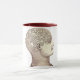 Appréciez votre café ou thé avec cette tasse imprimée soutenant l'image d'une carte de bosse de tête de phrénologie.