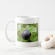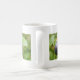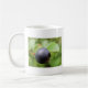 Die Grossaufnahme einer wildwachsenden Heidelbeere vor grünem Blatthintergund ist auf dieser Tasse zu sehen. Texte dans der Mitte : Bonne journée. Die Tasse ist in verschiedenen Farbkombinationen und Varianten verfügbar.