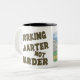 Une tasse de café drôle avec une image de bande dessinée de la tortue et des cheveux et l'énonciation "non plus dur plus futé fonctionnant"