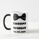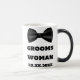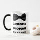 Convient à votre femme du marié ou demoiselle d'honneur du marié, ajoutez leur nom et la date de votre mariage à cette tasse de mariage classique noire et blanche de Demoiselle d'honneur femme du marié