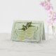 Vous cherchez un moyen de rassembler les gens ? Envoyez cette carte de vœux en guise d'invitation ou d'annonce. La conception de la couverture est une photographie modifiée numériquement de deux tasses de thé en forme de spirale verte avec des brins de menthe sortant du haut. L'arrière-plan est constitué de fractales en spirale modifiées numériquement de couleur essentiellement verte et d'une couleur violette complémentaire. Les tasses sont encadrées par une bordure verte ondulée. Remplissez le champ de modèle pour le texte intérieur, supprimez le texte pour laisser de la place à une note manuscrite ou cliquez sur Personnalisez-le ! pour sélectionner un style de police, une taille et une couleur de votre choix. Dans Personnaliser, vous pouvez également ajouter du texte à la couverture de la carte. Personnalisez-la pour n'importe quelle occasion que vous souhaitez, utilisez-la