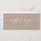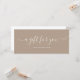 Certificat cadeau taupe de script minimaliste simple et élégant. Cet élégant certificat Cadeau de script s'intègre parfaitement dans une enveloppe professionnelle standard #10. Parfait pour votre marque et votre entreprise.