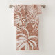 Un élégant motif boho tropical en feuille de palmier blanc sur un ensemble de serviettes de bain arrière - plan rose taupe. Mélange de teintes de sauce terelles mélangées à un style tropical ou côtier de feuilles de palmiers. Parfait pour le printemps ou l'été. Idéal pour une maison de plage côtière.