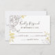 Ce design présente des pivoines et des feuillages dans un style de dessin moderne et minimaliste avec des accents d'or. La police correspondante comporte des sérifs classiques et une typographie cursive manuscrite. "Veuillez répondre" et la réponse par date sont en évidence sur le devant. Il a aussi "accepte avec joie", "nombre d'participants" et "décline avec regret". Le dos a également des accents de feuillage doré avec beaucoup de place pour ajouter du texte supplémentaire.
