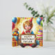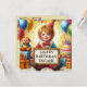 Un jeune garçon en costume de clown célèbre l'anniversaire de Taylor. Les salutations sur la carte sont "Happy Birthday Taylor". Sur le dos de la carte se trouve une petite version de l'image avant, et beaucoup de place pour écrire un message. Fabriqué avec l'aide d'AI Bing.