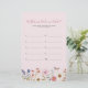 Mettez vos invités au défi avec notre jeu Blush Pink Fleur sauvage Tea Party "Où étions-nous". Décorées de magnifiques fleurs d'aquarelle peintes à la main dans un violet profond, bleu poussiéreux et rose vif avec de la végétation sauge, ces cartes de jeu complètent magnifiquement les tasses et soucoupes florales crème et or sur un arrière - plan rose vif, avec un joli papillon rose ajoutant du charme. Chaque élément est conçu pour créer une atmosphère cohésive et enchanteresse, assurant votre fête de thé nuptiale est à la fois amusante et élégante.
