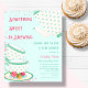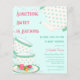 Papier à prix abordable, invitation baby shower, avec "Quelque chose de sucré est de brasser" avec un joli set de thé. Dans les tons pastel bleu turquoise et rose.