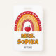 Featuring a cheerful rainbow and apple design, you can add your name and job title for a custom look.