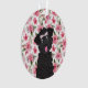 Cute, cheveux bouclés, noir, caniche à thé avec arc rose sur la tête. Adorable yeux et langue rose dehors. Illustration graphique : Lori@SaltTownStudio