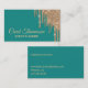 Carte de visite chic moderne fait dans la sarcelle d'hiver avec des graphiques d'une peinture scintillante d'or s'égouttant vers le bas à partir du bon dessus. Personnalisez le texte, sur l'avant et le dos de la carte, pour adapter à vos besoins d'affaires.