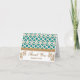 La tuile marocaine française élégante, élégante et belle inspirée vous remercient des cartes de note de mariage avec une tonalité turquoise de répétition de vert bleu et une conception géométrique de motif d'or et une frontière florale de flourish de style baroque français hued d'or. Notre sembler classieux et luxe personnalisé vous remercient carde sont parfait pour un mariage orienté de Marocain, de mille et une nuits ou d'Aladdin. L'avant de ces cartes faites sur commande peut être personnalisé avec les noms des jeunes mariés. Ajoutez la signature et le message spécial du couple heureux à l'intérieur de la carte ou supprimez le texte pour le laisser vide. Concevez le © Chrissy H. Studios, LLC. Tous droits réservés