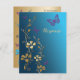 Cette carte de réponse de mariage florale bleu sarcelle et or comporte des papillons violets. Elle est mieux mise en valeur sur le papier nacré qui donne aux effets spéciaux dorés et aux autres aspects métalliques des effets imprimés le meilleur éclat et la meilleure brillance. Le texte et le choix du papier sont personnalisables. Si vous avez besoin d'articles assortis dans ce design, veuillez envoyer votre demande par courriel à niteowlstudio@gmail.com.