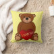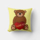 Mignonne, photo d'un ours en peluche tenant un coeur, avec le message, "I LOVE YOU", est présenté sur cet oreiller de lancer. Arrière - plan jaune clair, coussin a le même design à l'avant et à l'arrière. Décorez votre maison ou offrez-en un cadeau pour la Saint-Valentin! Fabriqué aux États-Unis>