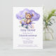 Un adorable ours en peluche volant un avion sur cette invitation baby shower. Tous les champs avant et arrière sont modifiables. Cette invitation est également disponible en bleu.
