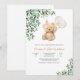 Celebrate your special day with this adorable teddy bear baby shower invitation featuring a cute bear holding balloons and surrounded by elegant greenery accents. Perfect for honoring parents-to-be, this charming design blends whimsical illustration with modern style. Ideal for baby shower parties, it provides a warm and festive way to invite loved ones. Customize easily with your event details to create a memorable keepsake guests will cherish.