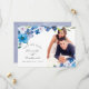 Élégantes cartes photo de save the date de mariage floral bleu pastel conçues pour être rapidement et facilement personnalisées selon les spécificités de votre événement.