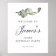 Bienvenue à vos invités avec cet élégant panneau d'anniversaire téléchargeable. Le sommet de est décoré d'accessoires de golf - un club de golf, balle de golf, casquette et gants. L'aquarelle crée une esthétique traditionnelle et classique. Parfait pour un bain d'anniversaire au club ou un jardin barbecue. Tout le texte est facilement édité. Créez rapidement et facilement des décorations de fête d'anniversaire avec ces modèles professionnels do-it-yourself.