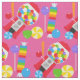 Si vous aimez la sucrerie vous aimerez ces amusement, tellement tissu coloré de sucrerie comportant un arrière - plan rose avec une machine de gumball complètement des gumballs, sucreries de remous de lumière des étoiles, lucettes, et sucreries enveloppées de petit pain dans des couleurs lumineuses !