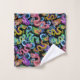 Un beau design avec un motif de dragons de style chinois dans les tons rose, bleu, vert et or, le tout sur un arrière - plan noir contrasté.