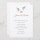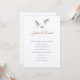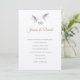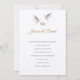 Ce faire-part de mariage est présenté dans une mise en page classique sur un arrière - plan blanc avec un choix de papier de 110 lb. feutre. Sélectionnez le papier de votre choix. Graphique de deux Doves de couleur blanche et gris argenté avec deux anneaux de couleur dorée au sommet. Noms de couple surlignés dans une couleur dorée. Texte du corps affiché en couleur gris argent. Customisez cet élément en prenant l'exemple de texte et en y mettant vos informations à la place. Image stock.