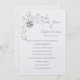 Cette faire-part de mariage est présentée dans une mise en page classique sur un arrière - plan blanc dans un choix papier de Peal Shimmer. Sélectionnez le papier de votre choix. Graphique de motif floral et de vigne d'apparence argentée en haut à gauche. Les noms des couples en haut à droite et le texte du corps sous leurs noms sont dans un bleu Dusty doux. Customisez cet élément en prenant l'exemple de texte et en y mettant vos informations à la place. Image stock.